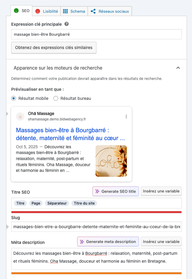 Pour un article Wordpress bien optimisé SEO, plusieurs éléments doivent être renseignés :
