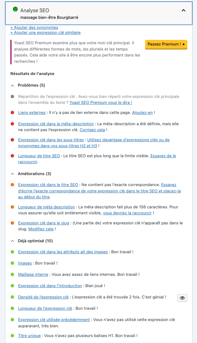Cette section vous permet d'analyser rapidement le contenu et corriger ce qui ne va pas :